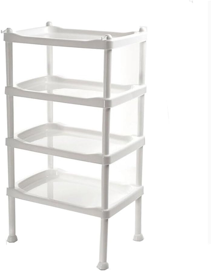 4 Layer Plastic Bathroom Shelf Bathroom Kitchen Organizer With Hook Storage Basket Small Shelving Unit Drying Rack Bathroom Organization Standing Shelf Units White Amazon Co Uk Kitchen Home