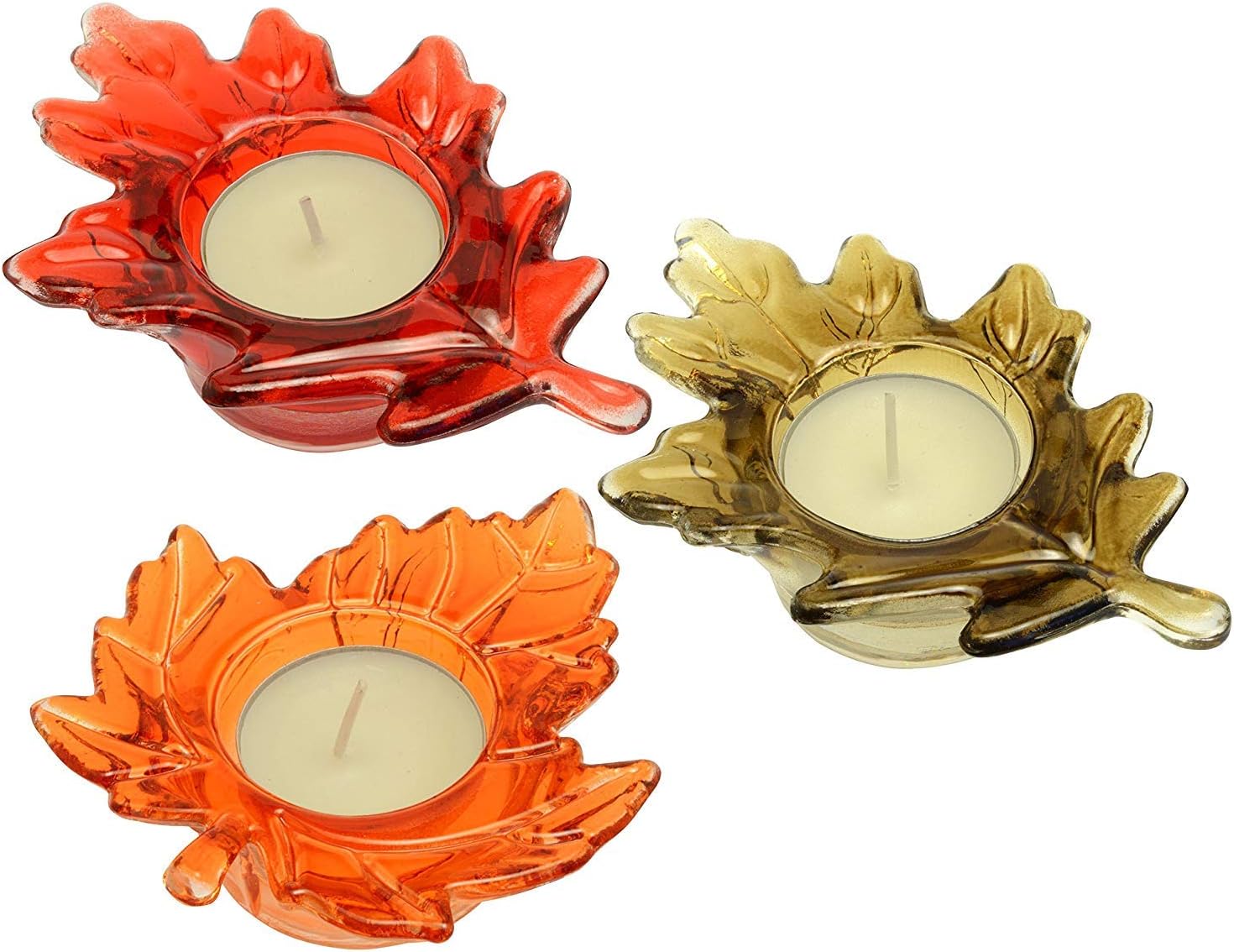 Amazon Com Fall Harvest Leaf Candle Tea Light Holders 1 Set Of 3 Thanksgiving Home Kitchen