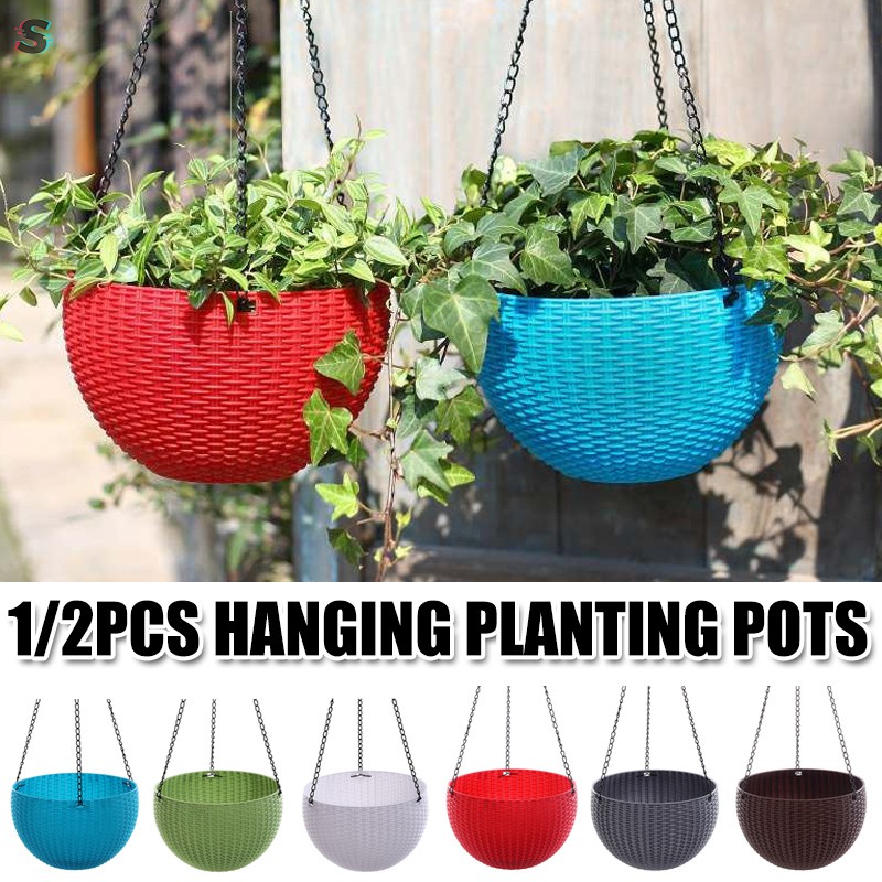 Hanging Basket Rattan Plastic Flower Pot Garden Hanging Planter For Indoor Outdoor Plant Shopee Indonesia