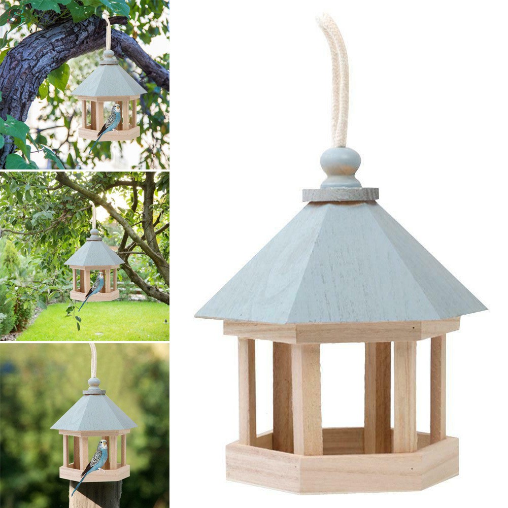 Hanging Bird Feeder Bird House Shaped Garden Outdoor Birdhouse Wooden Parrots House Garden Nest Shopee Indonesia