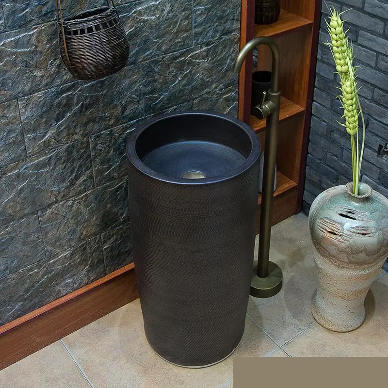 Balkon Outdoor Toilet Wastafel Integral Basin Lantai Semua Hitam Pedestal Wash Basin Berdiri Bebas Vanity Cuci Wastafel Bathroom Sinks Aliexpress
