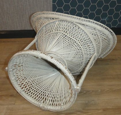 VTG PEACOCK CHAIR wicker high back fan rattan mid century modern PICKUP ONLY. These white wicker chairs are well constructed and will fit into you clean home look with a simplicity that works with many styles. There are a few tiny spots where green paint has chipped off and white shows through.