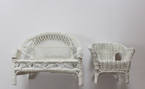 Vintage White Wicker Rattan Loveseat And Chair Doll Furniture Etsy
