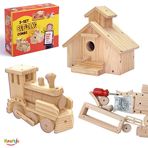 Kraftic Woodworking Building Kit For Kids And Adults With 2 Educational Diy Carpentry Construction Wood Model Kit Toy Projects For Boys And Girls Town Hall And Train Walmart Com Walmart Com