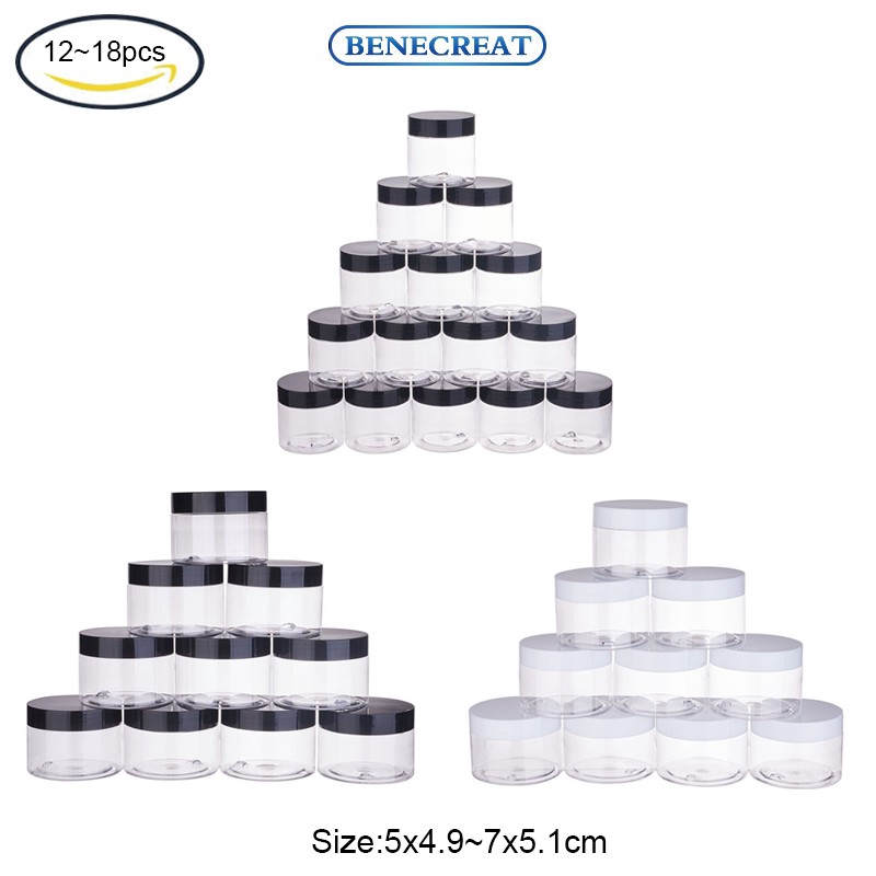 12 18pcs 60 120ml Clear Plastic Slime Storage Jars Wide Mouth Containers Round With Screw Cap Lids For Beads Nails Art Shopee Indonesia