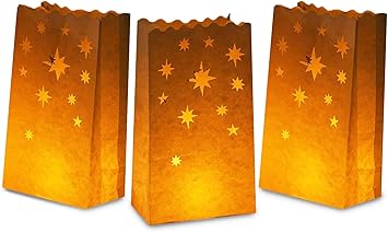 Amazon Com White Paper Luminary Bags 24 Pack Candle Lantern Bags Fire Retardant Star Luminaries For Christmas Weddings Birthday Party Decoration Use With Tealights Votive 5 9 X 10 X 3 5 Inches Arts Crafts Sewing