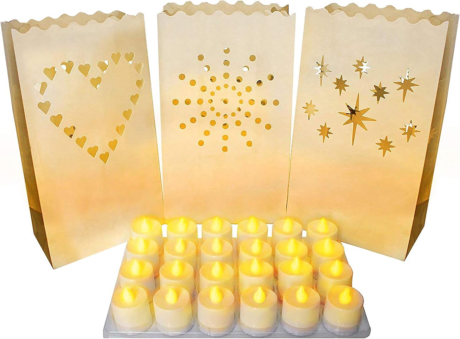 See more ideas about luminaries bags luminary candles. A wide variety of wedding candle bag options are available to you such as use material and theme. AceList 30-Set Luminary Bag with Candles Flameless Tea Lights Fire Resistant Paper Decoration for Wedding Gift for Mothers Day Ramadan Star Design for Parties Birthday Garden Cafeteria Dinner.