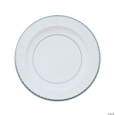 White Paper Dinner Plates With Silver Trim 8 Ct Oriental Trading