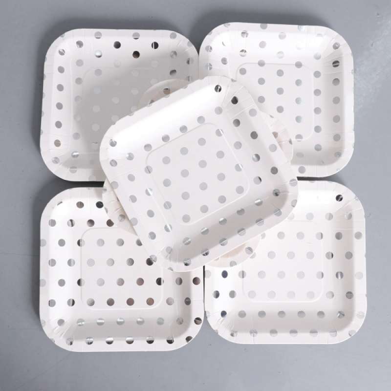 If youre having a party serve your guests on beautifully designed high-quality paper plates from Zazzle. Disposable Wedding Party Plates. White with Metallic Silver Stamped Foil Dots Disposable Paper Cocktail NapkinsLook for white and Silver lunch napkins paper plates and coordinating touch of color solids stripes and dots.