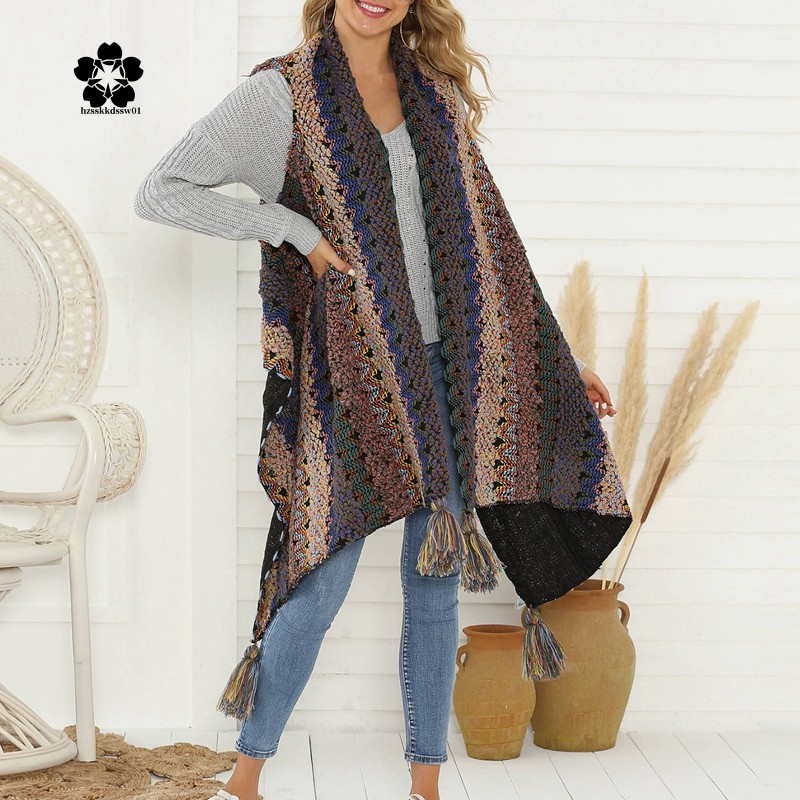 Cod Women Knitted Winter Warm Sweater Cardigans Tassel Fringe Shawl Poncho Cardigan Jackets Coats Oversized Brown S Shopee Indonesia