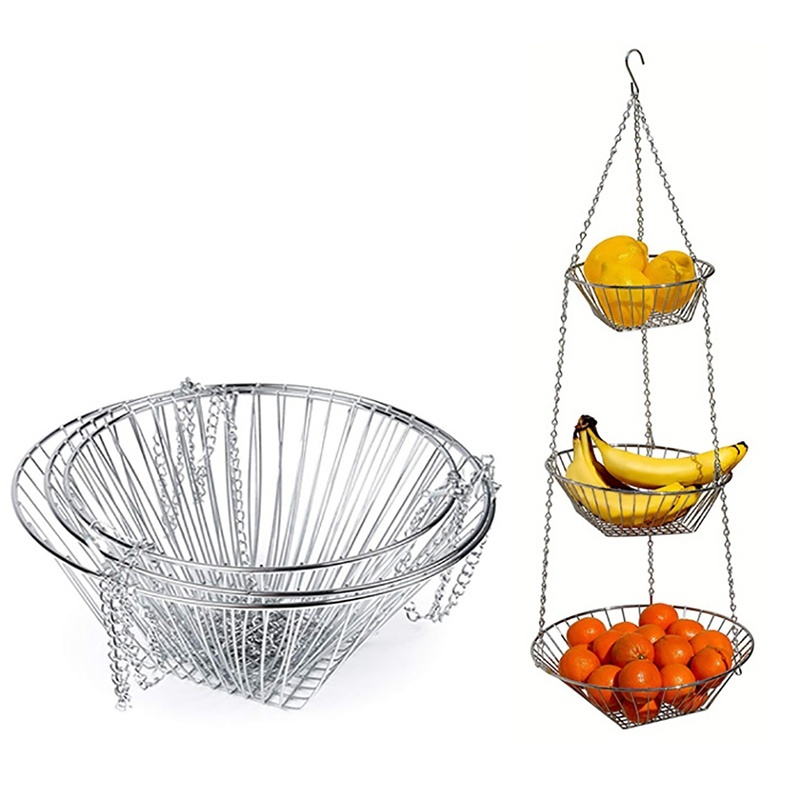 3 Layer Foldable Fruit And Vegetable Hanging Basket Iron Chain Household Goods Storage Tool Shopee Indonesia